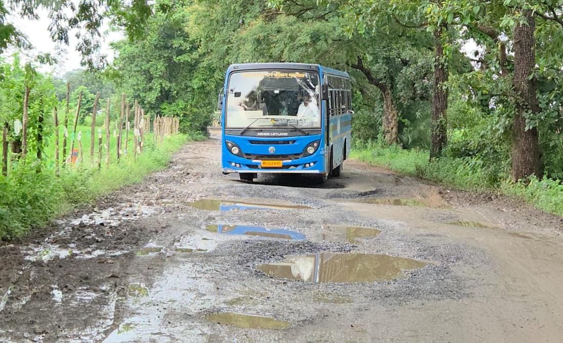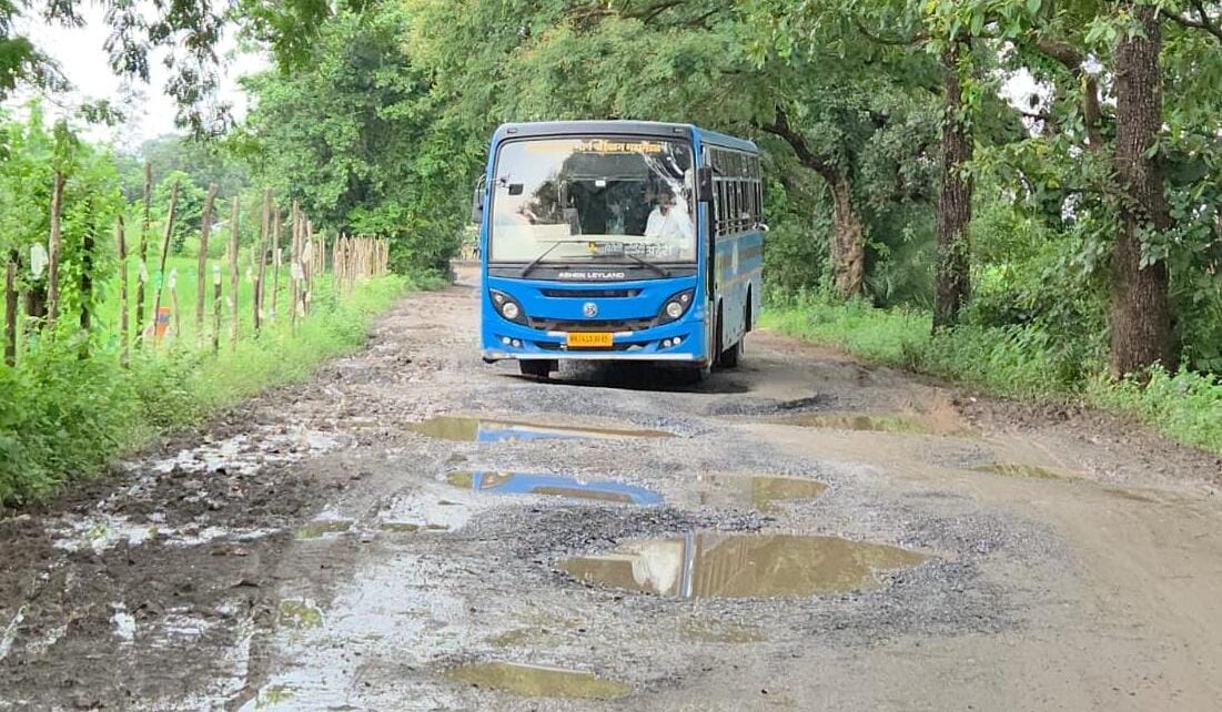 रस्त्यावरील खड्डे कायम,मुलचेरात सुरू आहे जीवघेणा प्रवास